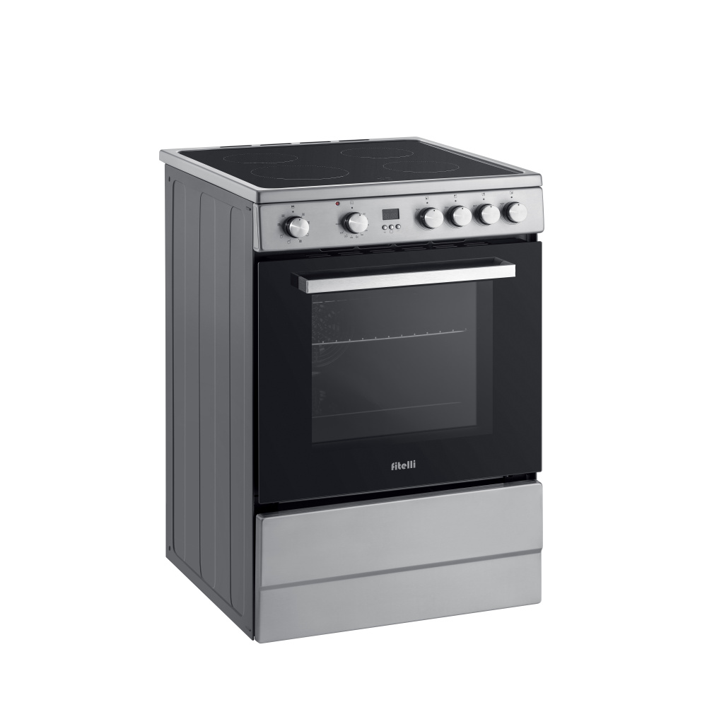 Fitelli FK6002RVS keramisch Fornuis 60CM met heteluchtoven- Grijs- 2 of 3 fase