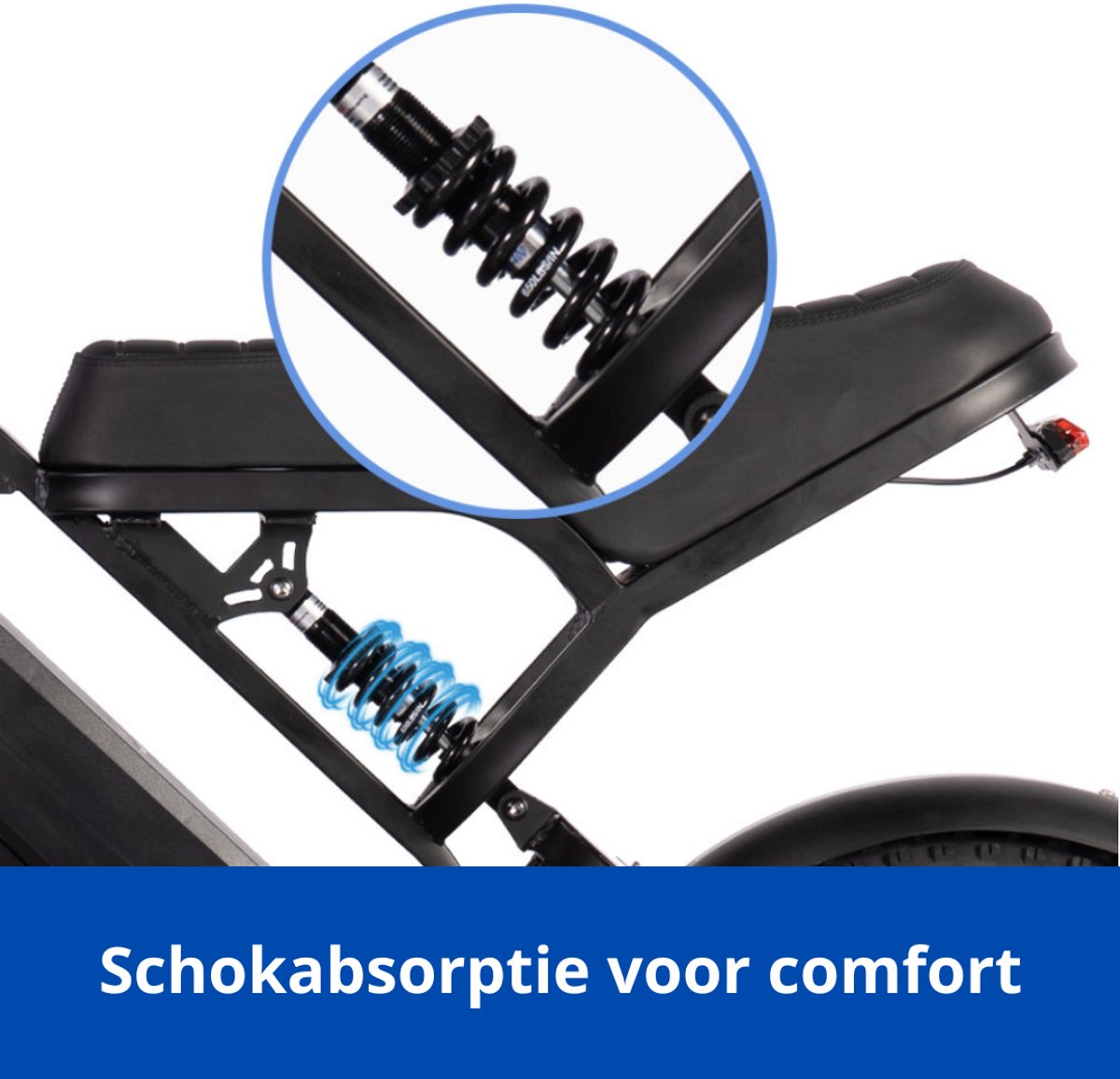 • Dubbele vering om soepel te rijden op hobbelige wegen