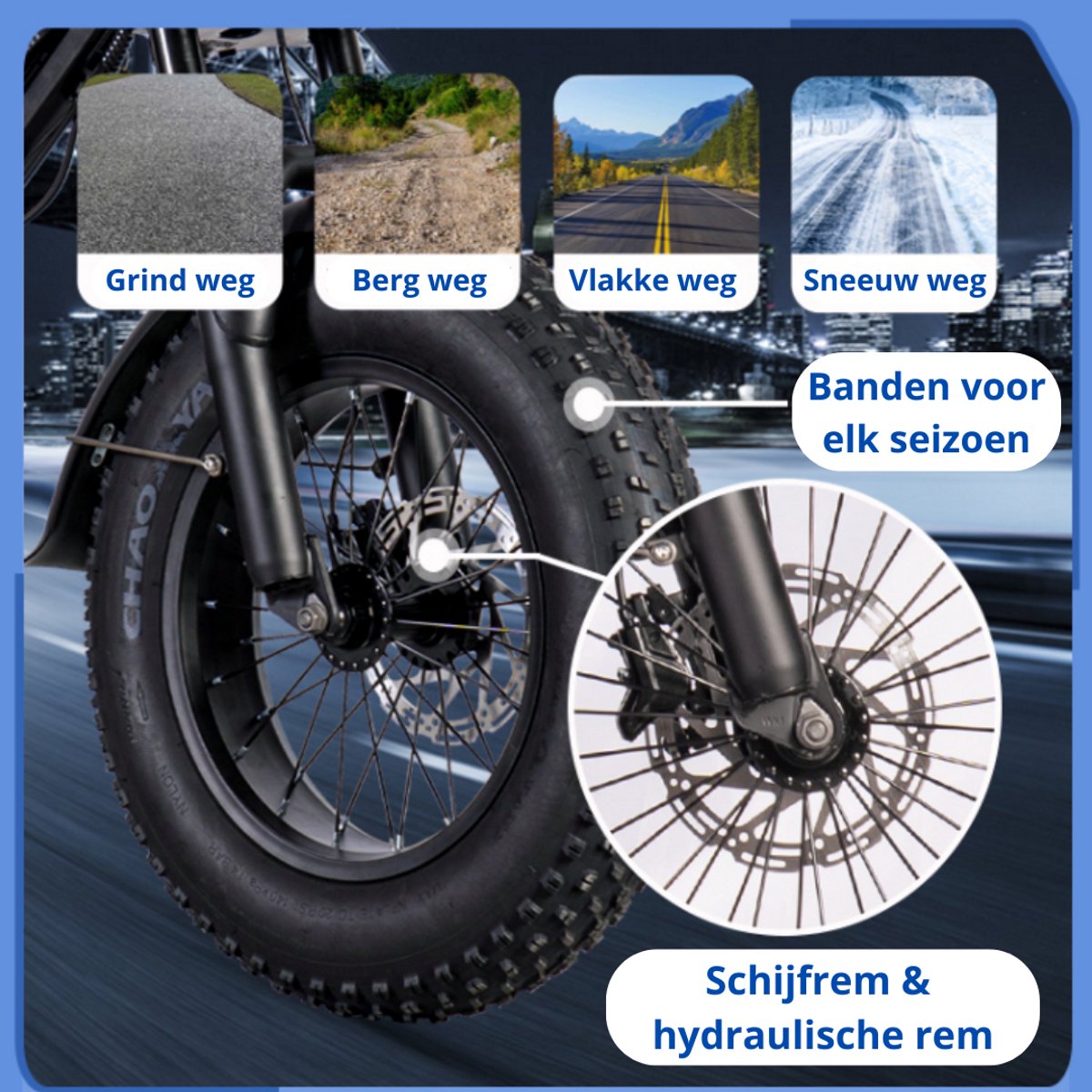 • 16 inch offroad banden die compact en perfect zijn voor elk terrein