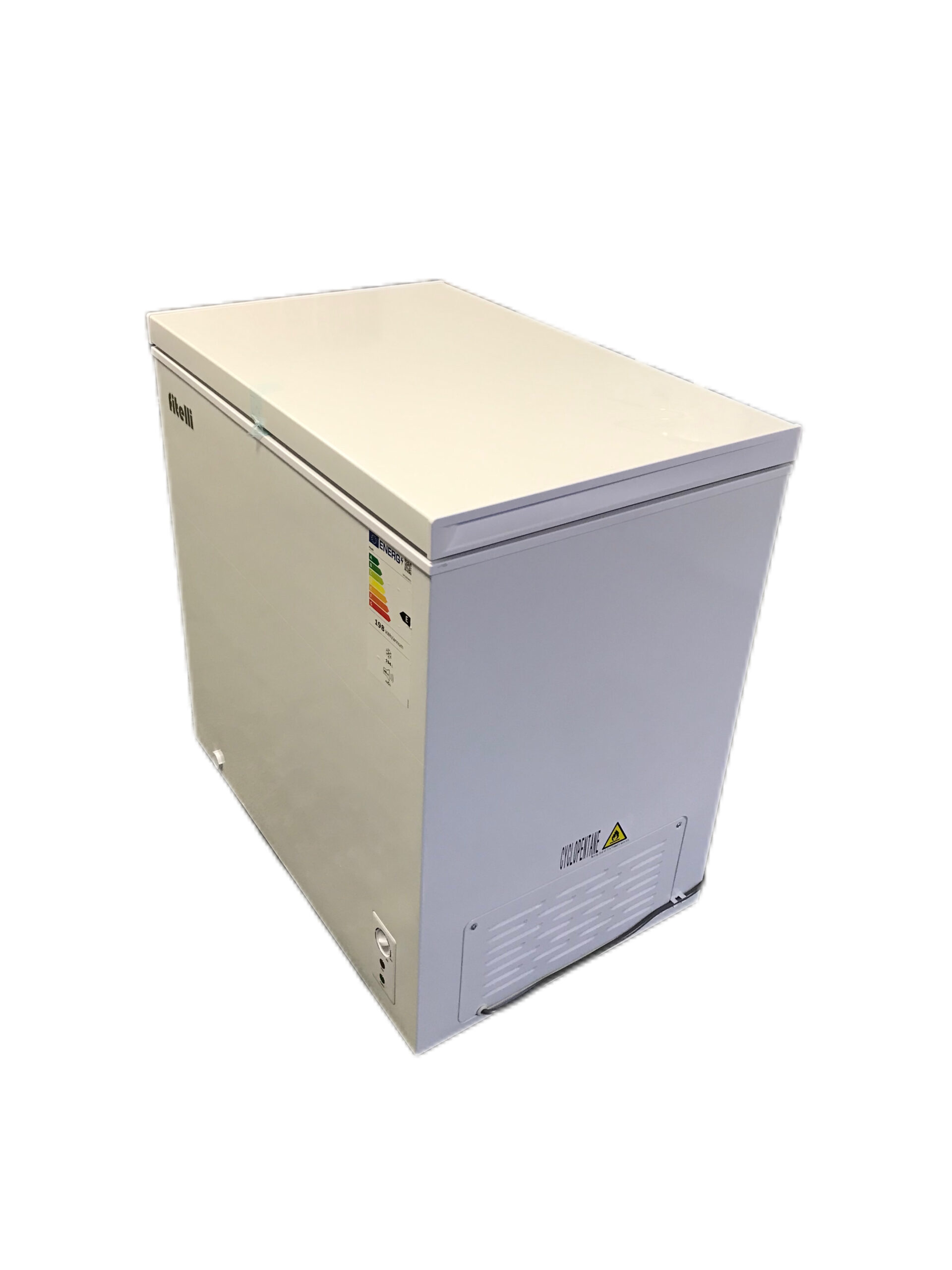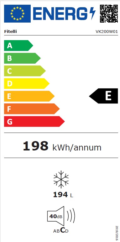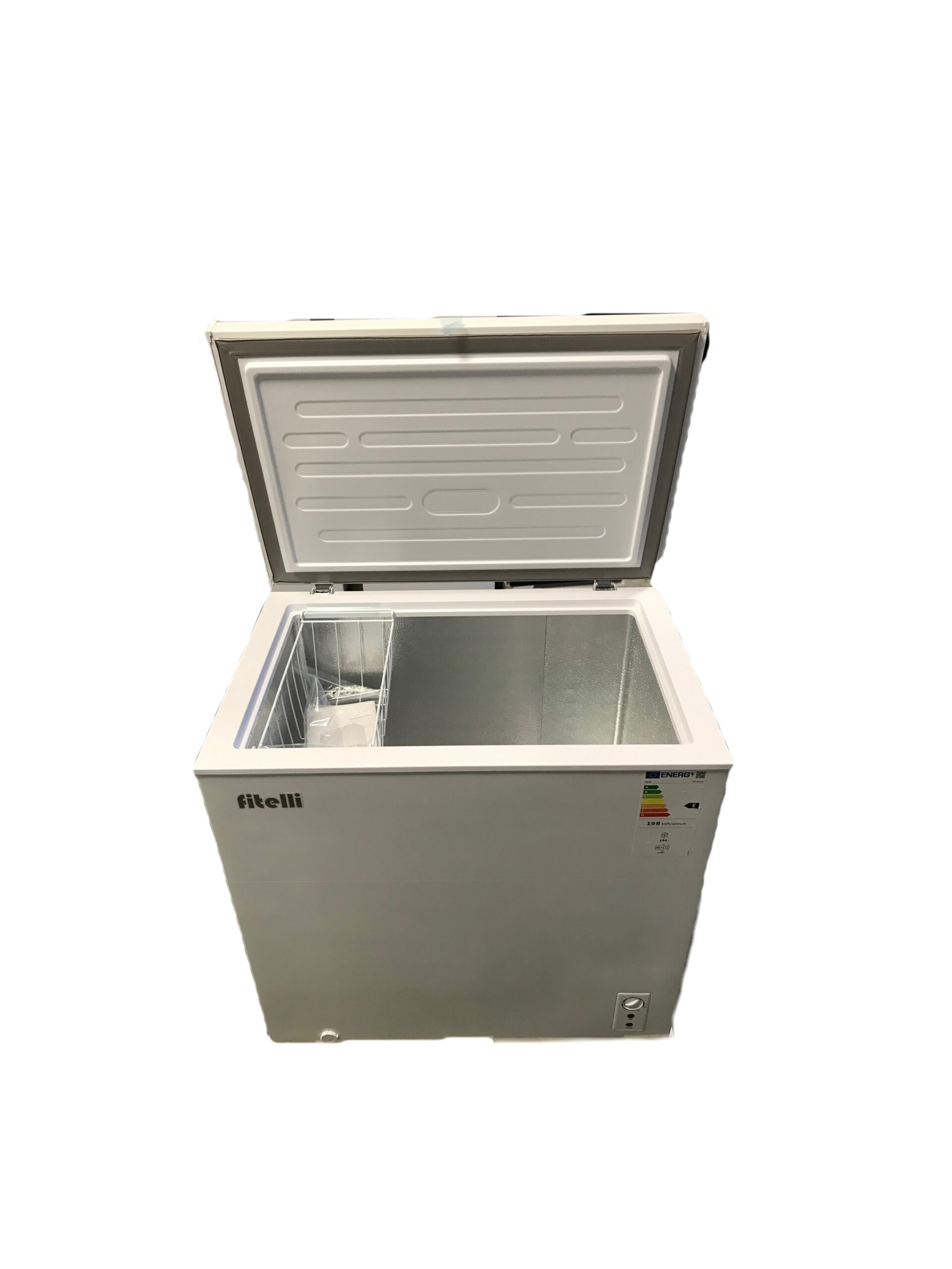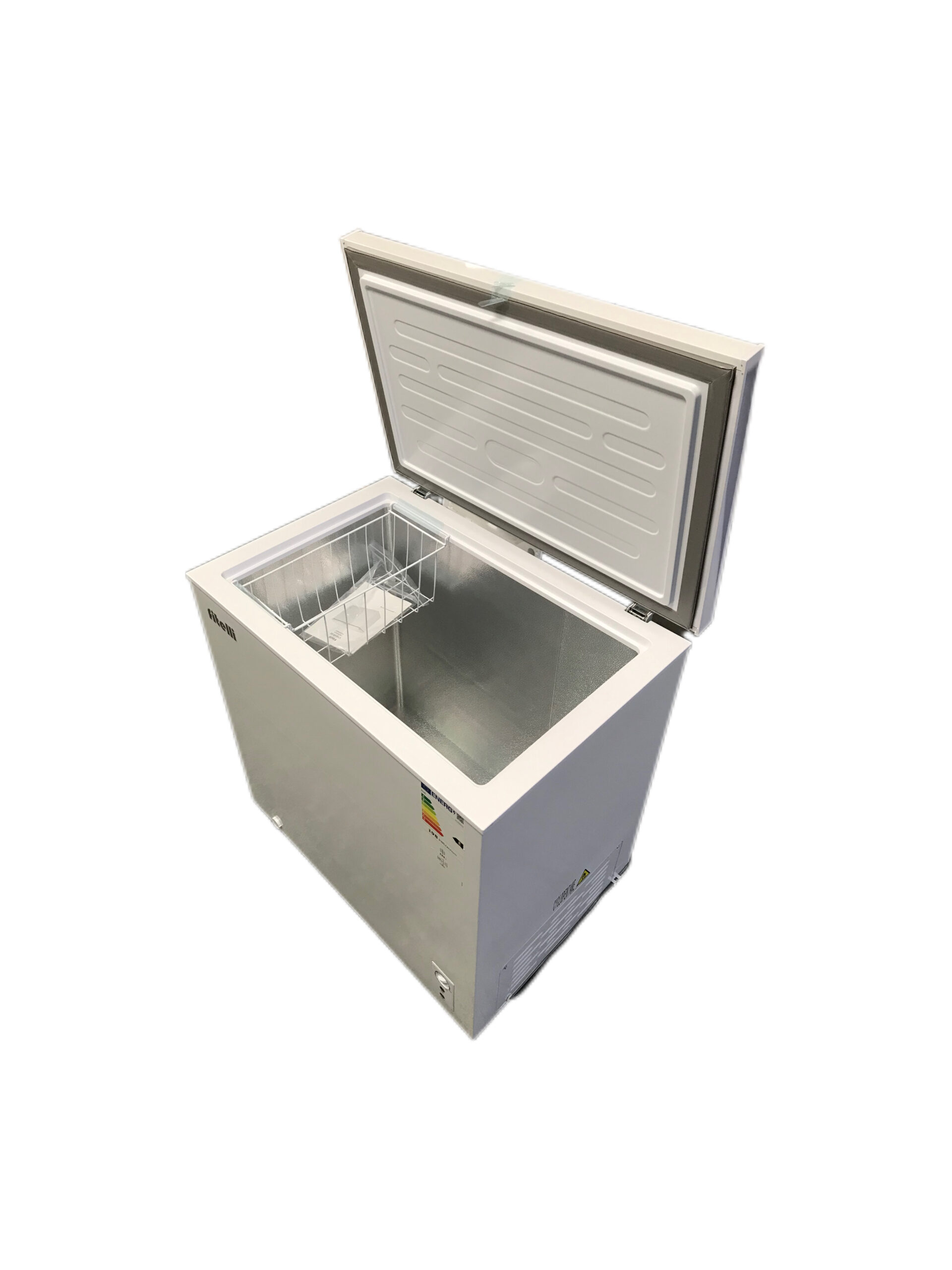 De Fitelli vrijstaande vrieskist VK200W01 heeft een inhoud 200 liter. Het 4-sterren apparaat heeft een invriesvermogen van 16 kg/24u en heeft energieklasse E.