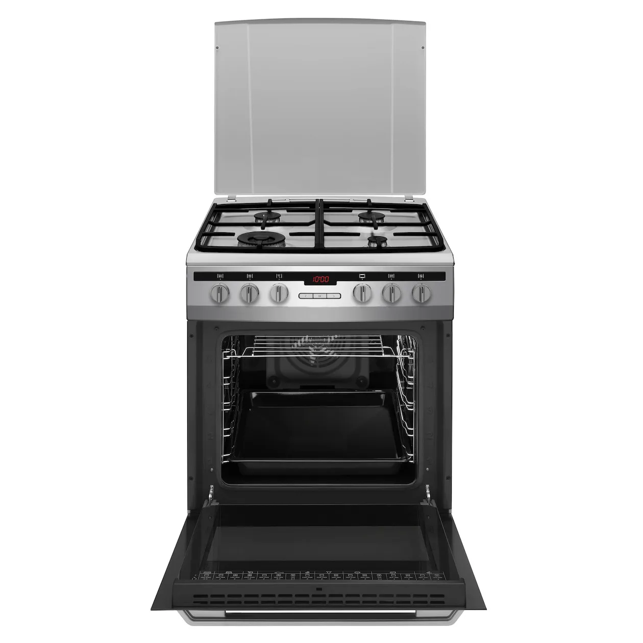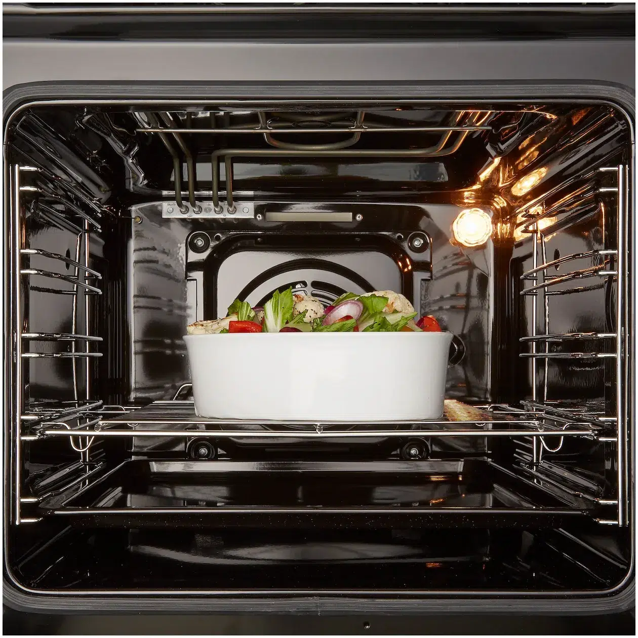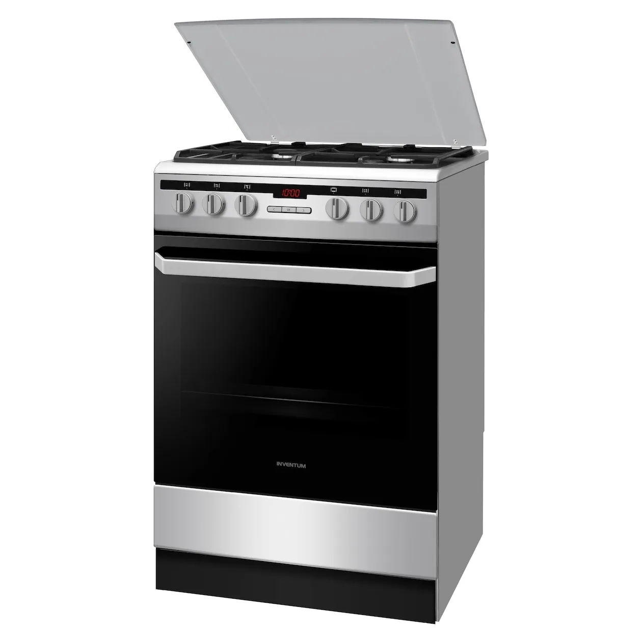 Met het vrijstaande Inventum fornuis VFG6034WGRVS kun je koken, bakken en braden tegelijk. Het kookgedeelte heeft een vangschaal van roestvrijstaal en 4 branders met gietijzeren pandragers. De branders zijn voorzien van geïntegreerde vonkontsteking en vlambeveiliging. Met de deksel kun je het kookgedeelte afdekken, als je het fornuis niet gebruikt. De heteluchtoven heeft een inhoud van 65 liter en 11 handige ovenprogramma’s. Je kunt de temperatuur instellen van 50°C tot 250°C. De oven wordt geleverd met bakplaat en rooster. Door de 5 insteekniveaus kun je meerdere gerechten tegelijk bereiden. Schoonmaken van de oven gaat gemakkelijk door het easy clean emaille. Ook de ovendeur is eenvoudig te reinigen doordat deze helemaal van glas is, zonder lastige randen of kieren.