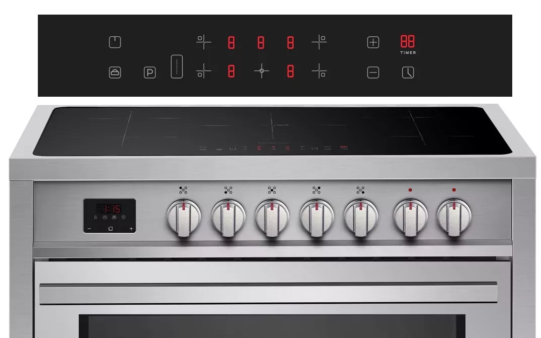 - Inductie Kookplaat: De vijf inductiezones zijn eenvoudig te bedienen via zowel knoppen aan de voorkant als touchbediening op de kookplaat. Met de boosterfunctie kun je alle kookzones tegelijk op maximale capaciteit laten werken. Voor iedere zone kun je de gewenste stand instellen of de timer gebruiken.