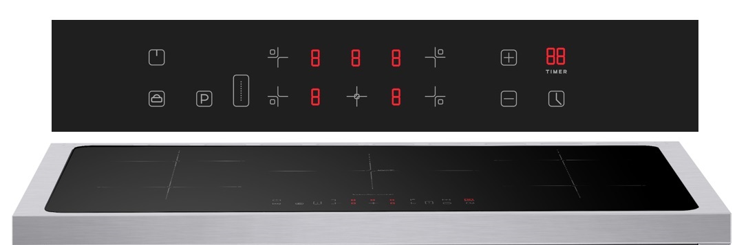 De inductie zones zijn gemakkelijk te bedienen met de tiptoets bediening op de kookplaat zelf en ook met knoppen aan de voorkant. Met de boosterfunctie kun je alle vijf kookplaten tegelijkertijd op maximale capaciteit laten werken. Daarnaast kun je per zone de gewenste stand ingeven of de timer aanzetten.