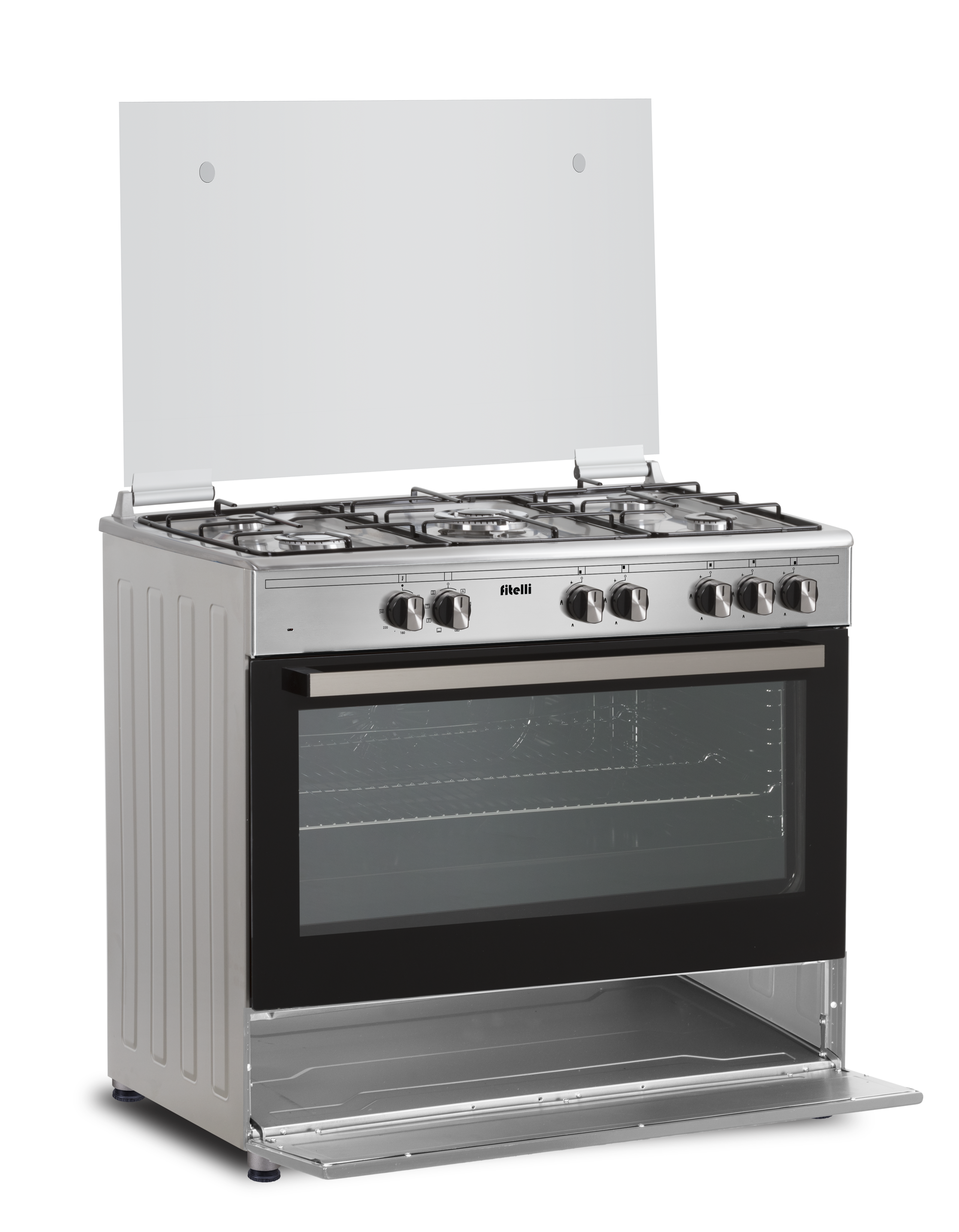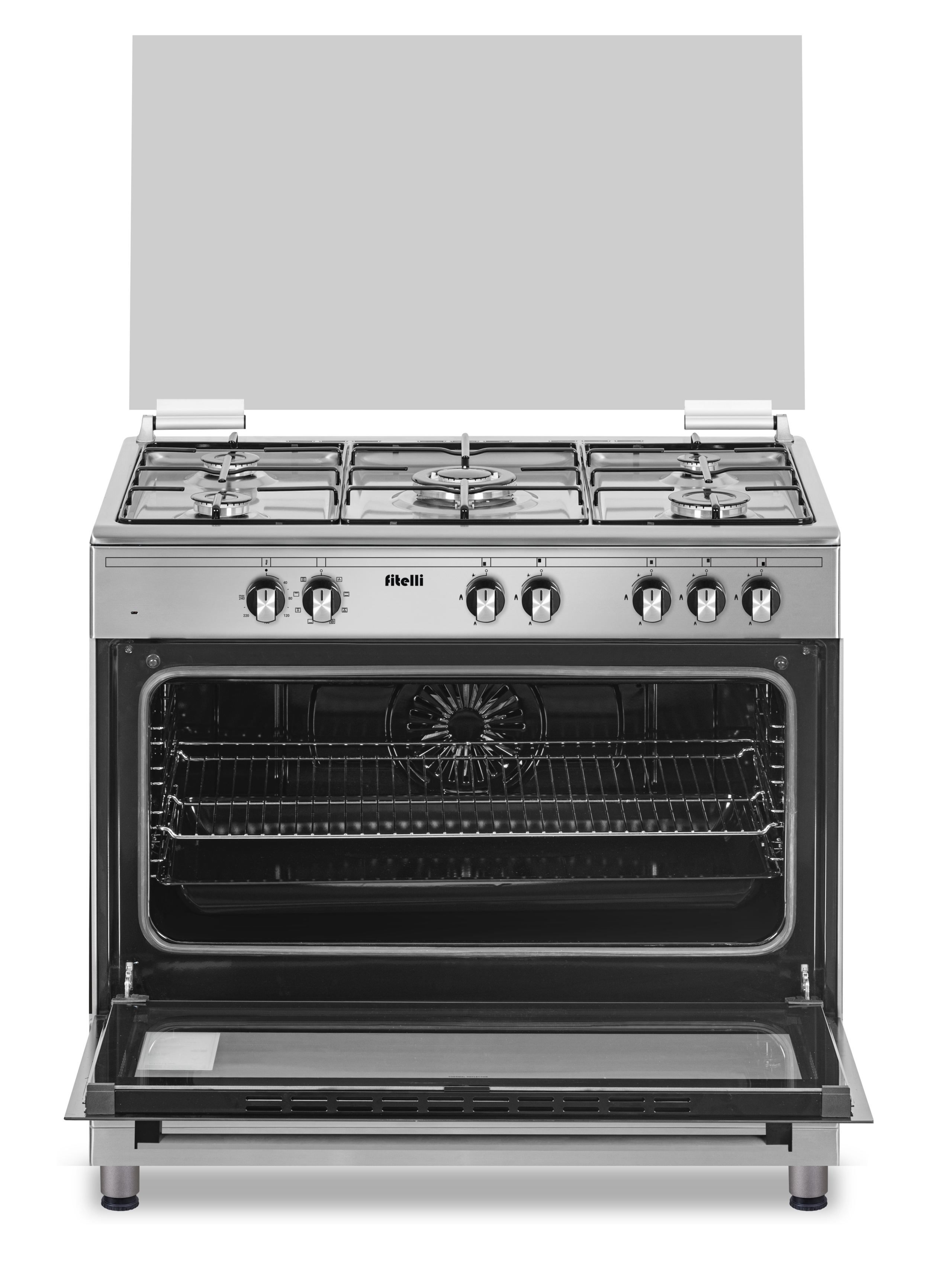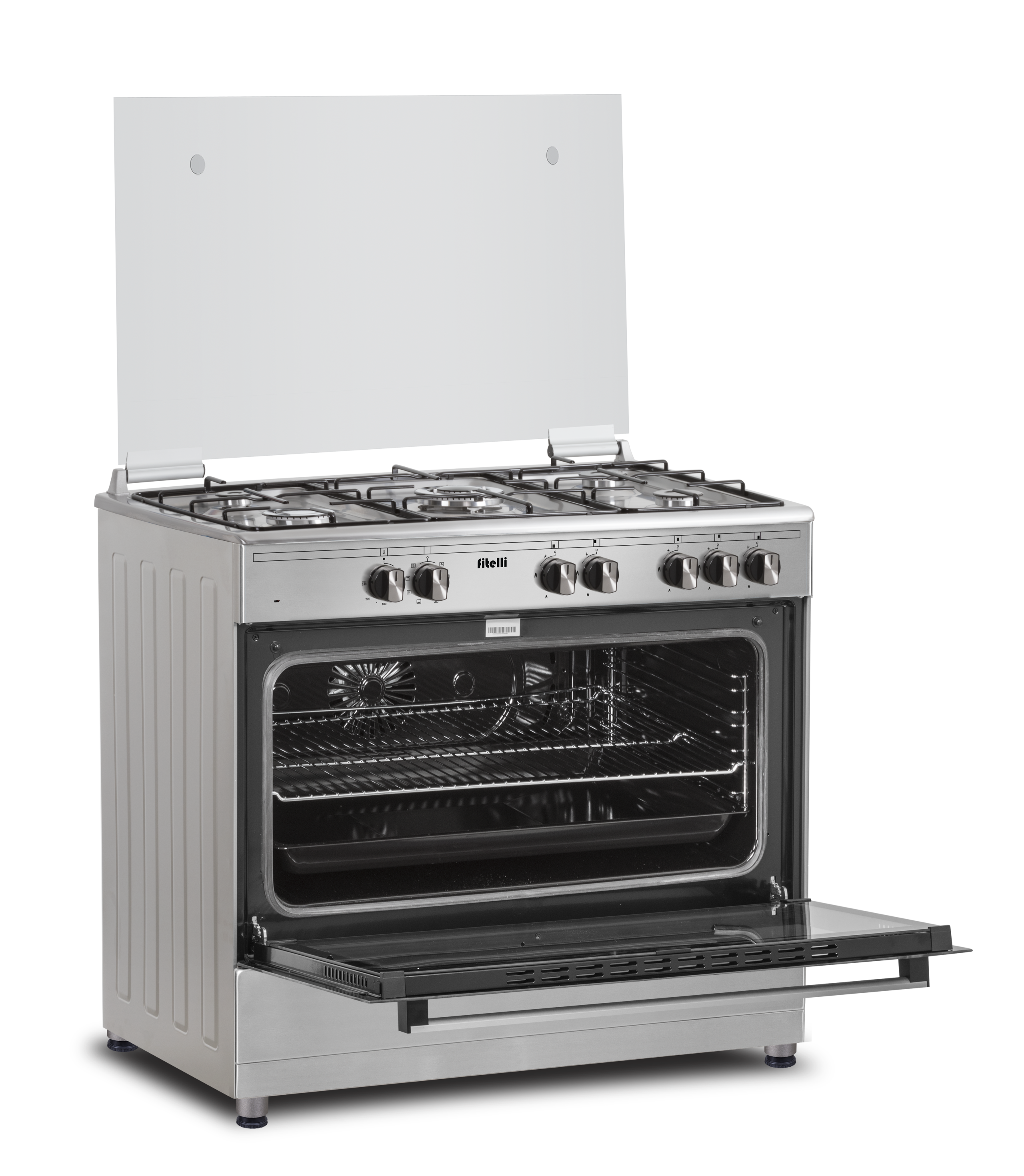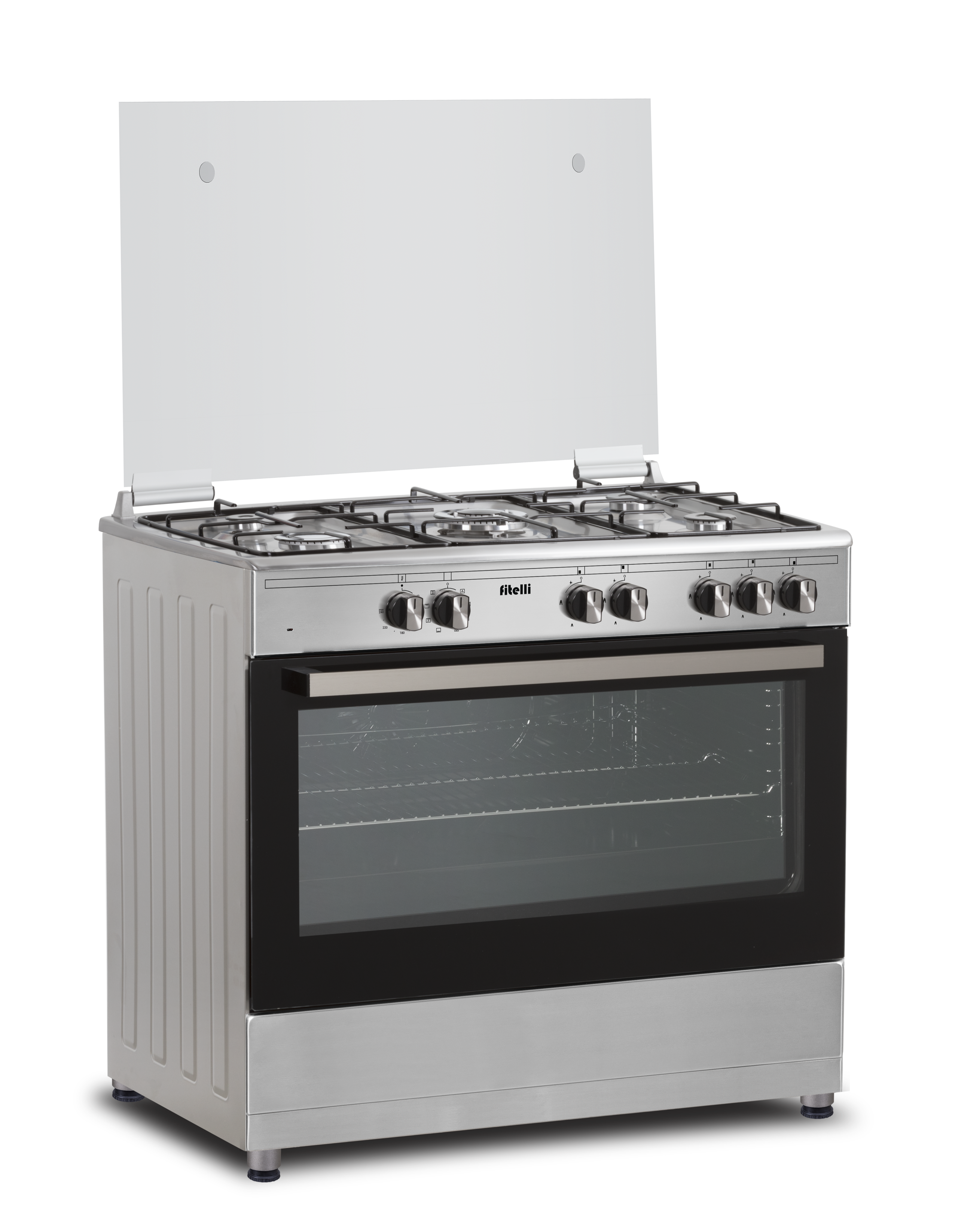 De Fitelli FG9001RVS is een gasfornuis met een elektrische oven. Het fornuis beschikt over geïntegreerde vonkontsteking en vlambeveiliging. Dit laatste zorgt ervoor dat de gastoevoer automatisch wordt afgesloten wanneer de pit (per ongeluk) uitgaat. Op die manier kan je volkomen veilig met gas koken.