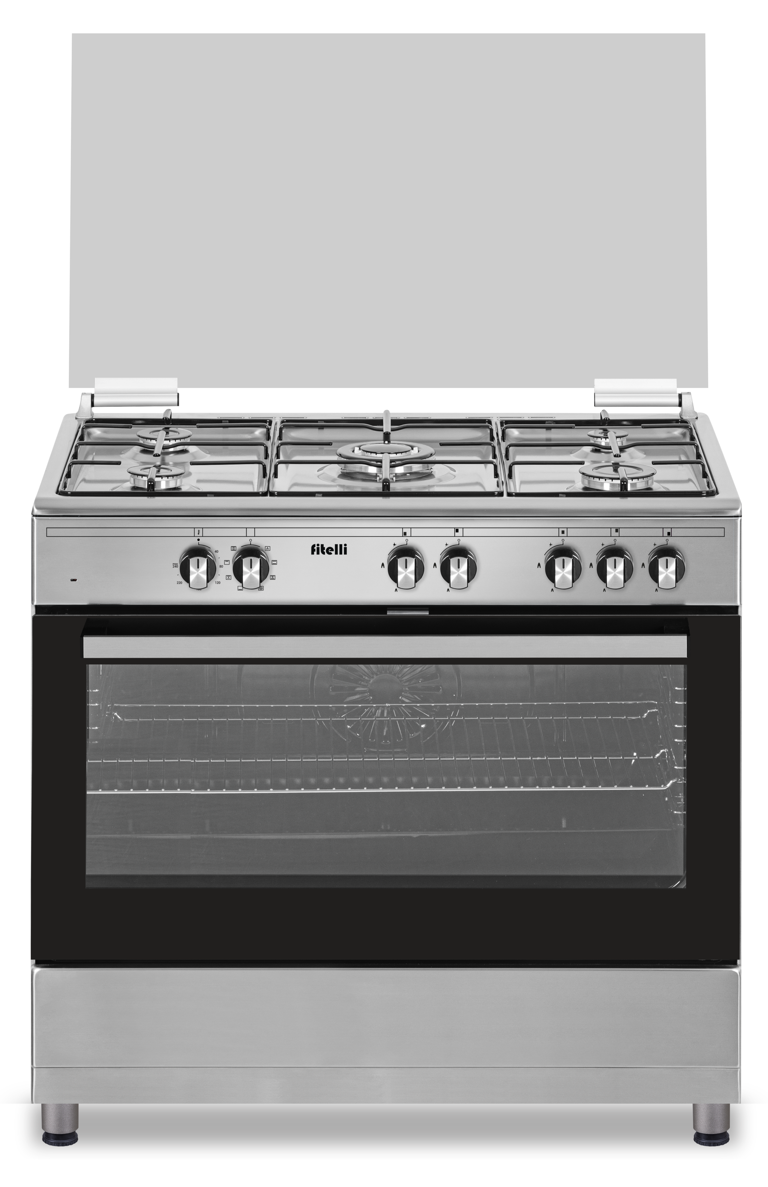 Fitelli FG9001RVS RVS gasfornuis 90cm Met Hetelucht oven