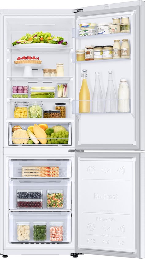 Door middel van de LED verlichting in de Samsung RB34C670DWW koel-vriescombinatie, heb je een helder overzicht. De SpaceMax zorgt voor een grotere inhoud, zonder dat de omvang van de koelkast verandert. In totaal beschikt het over een netto inhoud van 344 liter. Vries of koel snel producten in door middel van de PowerCooling/Freezing functie en ontdooien is nooit meer nodig dankzij het NoFrost systeem. Daarnaast kan je groente en fruit bewaren in de freshlade voor een langere versheid. Deze moderne koel-vriescombinatie beschikt ook over een Wi-Fi functie, waardoor je deze kan koppelen aan de SmartThings app en kan verbinden met andere slimme apparaten in je huis.