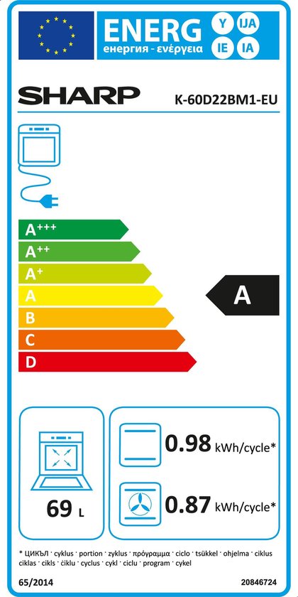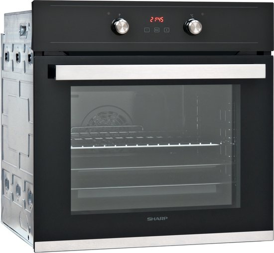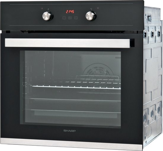 Fraaie inbouwoven van Sharp type K-60D22BM1. Grootte oven: 69 Liter, Totale binnen capaciteit (ovens): 69 l, Totaal vermogen van de oven: 2600 W. Kleur van het product: Zwart, Soort bediening: Draaiknop, Controle positie: Boven voorzijde. Energie-efficiëntieklasse: A, Netbelasting: 2600 W, AC invoer voltage: 220-240. Breedte: 595 mm, Diepte: 575 mm, Hoogte: 595 mm