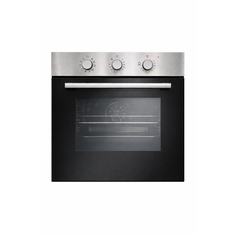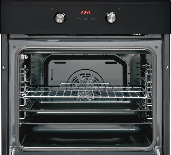 inbouw oven, 2 inschuifbare trays in rek ( 1x diep – 1x ondiep ) en gebruikershandleiding.
