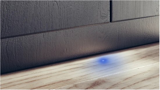 infoLight projecteert een blauw licht op de keukenvloer wanneer het gekozen programma loopt. Zo weet je in één oogopslag of je het programma hebt gestart, de vaatwasser nog bezig is of dat de vaat schoon is en kan worden uitgeruimd.